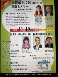 2025年11月10日『お茶の水 がん哲学外来・メディカルカフェ in OCC(お茶の水クリスチャン・センター)』の会場で、【2018年のドキュメンタリー映画『がんと生きる 言葉の処方箋』(文部科学省選定、厚生労働省推薦)と2024年のドキュメンタリー映画『新渡戸の夢 〜 学ぶことは生きる証 〜』(野澤和之監督)】のプロデューサーの並木秀夫氏が【朗読劇】を企画された (添付)