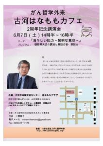講座終了後は、中野駅から古河駅向かう。【『古河はなももカフェ 2周年記念講演会』(代表:三橋惠子氏)】で講演『清々しい胆力 ~ 賢明な寛容 ~』である(添付)。 講演後は、『質疑応答・懇談会』も予定されている。