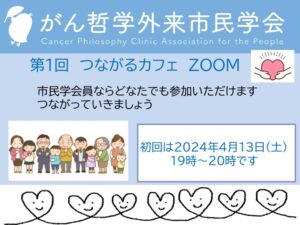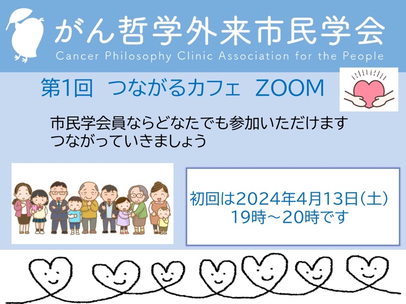 その後、筆者は代表を務める『がん哲学外来市民学会』(Cancer Philosophy Clinic Association for the People:2011年設立)の『第17回つながるカフェ』(事務局の嶋田弥生氏の司会)(初回は2024年4月13日:添付)に参加した。【がん哲学外来カフェ『赤い屋根』】(大阪府)の発表を拝聴した。 大いに感動した。