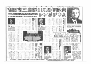 吉田富三は、『医学者としてのみならず、癌という病気を通じて社会の原理まで言及す言葉』を多数残している。『癌細胞で起こることは、人間社会でも起こる』を学び、2004年『がん哲学 〜 がん細胞から人間社会の病理を見る 〜』(to be出版)(添付)を出版するという時を与えられた。 2013年には『吉田富三生誕110周年記念』を企画され、新聞記事が大きく掲載された(添付)。 2019年『吉田富三記念福島県立医科大学がん哲学外来10周年記念講演会』も企画された。 『居場所の重要性』を痛感する日々である。