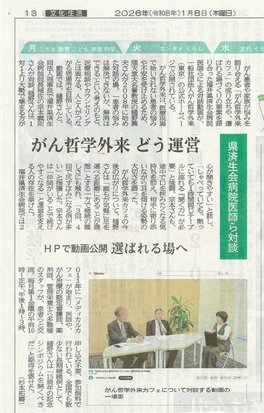 年末に福井で行ったがん哲学外来対談が本日新聞に掲載されました。