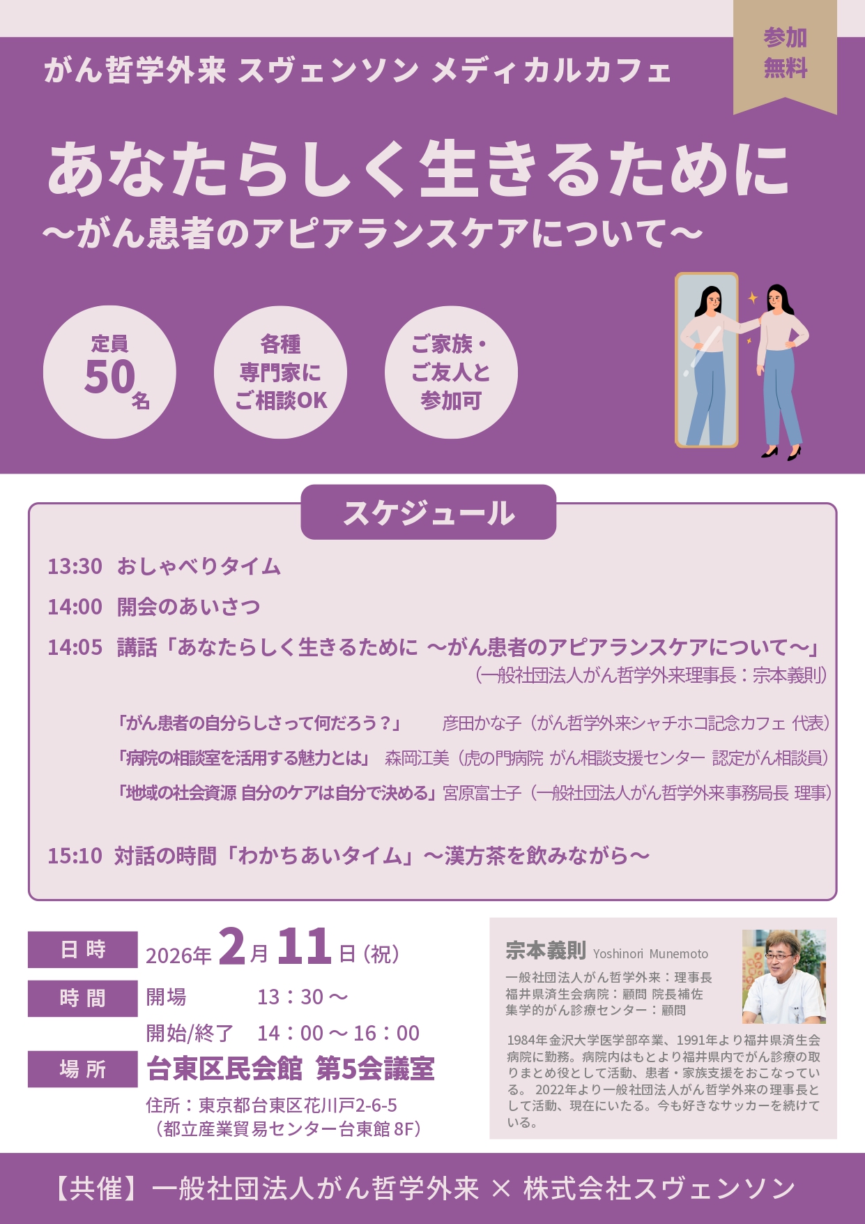 2026年2月11日(祝)|がん哲学外来 スヴェンソン メディカルカフェ