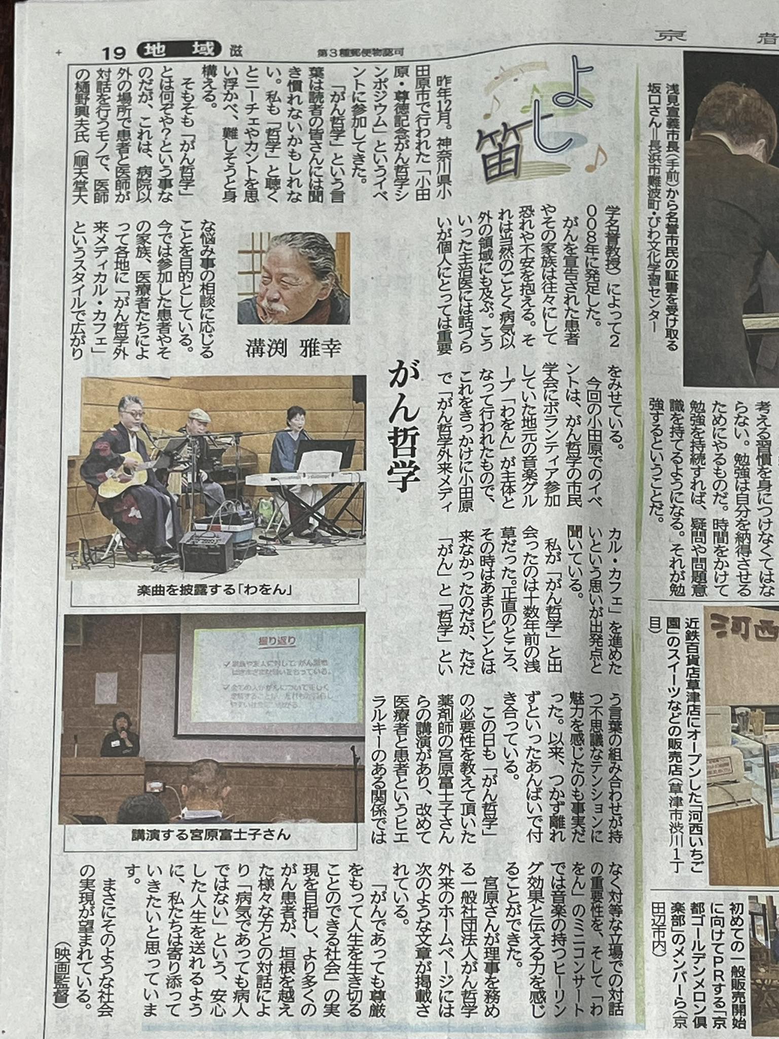 〇講和「全国で広がる「がん哲学外来カフェ」将来に向けて